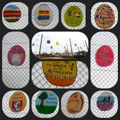 Viele Erpolzheimer Vereine, Institutionen und Privatleute ließen sich inspirieren und stellten auf vielfältige Weise buntbemalte Ostergrüße in Eiform aus eigens ausgesägten Spanplatten her.