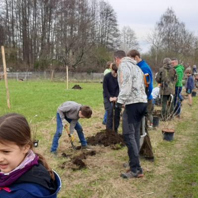 An die Hundert Erwachsene, Kinder und Jugendliche folgten dem Aufruf der Gemeinde, der Bürgerstiftung und der Offenen Umweltgruppe an der Bepflanzungsaktion teilzunehmen.